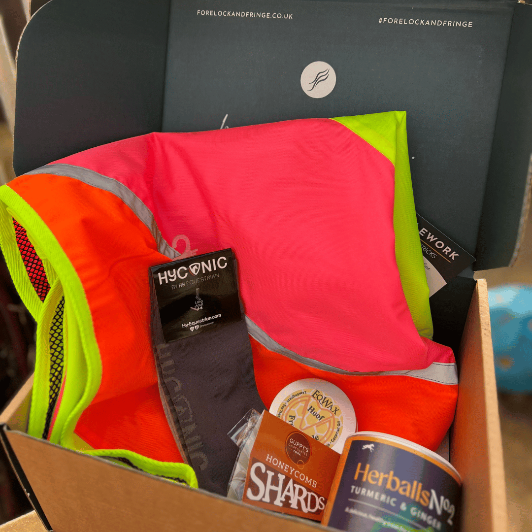 This set box has useful items for both horse and rider. This box is NOT gift wrapped.